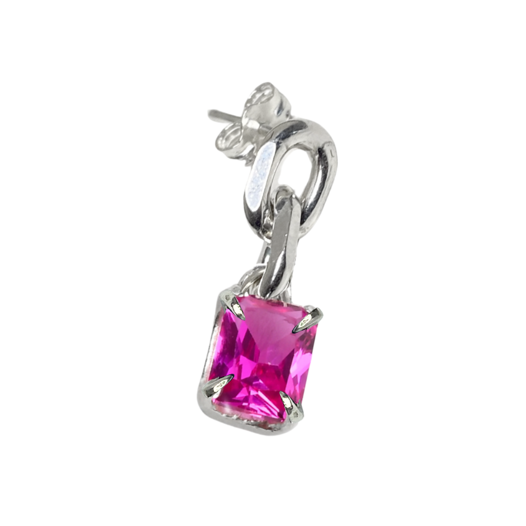 ROMEO features bold classic angular chain and a gemstone charm. 2cm long.